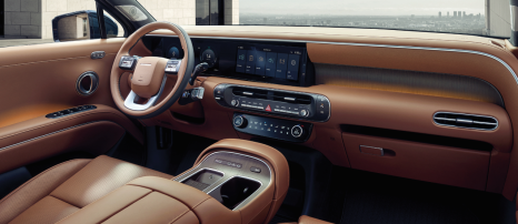 실내는 특히 큰 변화를 보였습니다. 12.3인치 디지털 클러스터와 인포테인먼트 시스템이 일체형으로 통합되며 넓은 시인성과 조작성을 자랑합니다. 버튼식 기어 셀렉터는 여전히 유지되었으나, 센터패시아의 레이아웃이 더 직관적으로 재배치되며 사용자 편의성이 향상되었습니다. 소재 역시 고급 무광 우드트림, 천연 가죽 소재, 메탈릭 포인트 등을 적용해 고급감을 대폭 끌어올렸습니다.